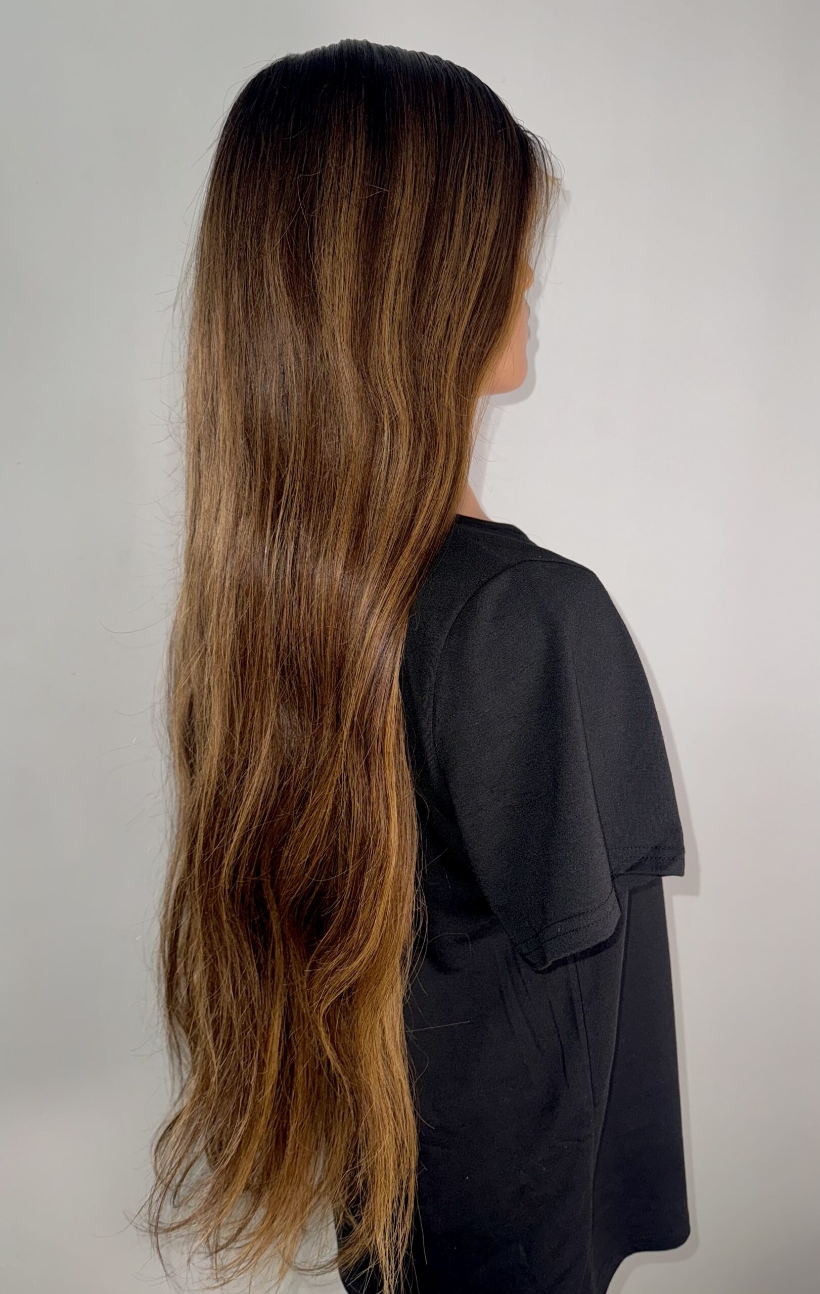 Tumi unit She’s giving silkiness and all things lush. She’s a 26″comes as wavy hair with a clean finish.